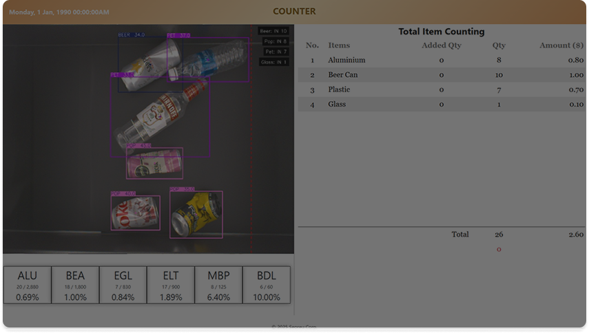 WIMPLE recognizes all recyclable items — not only by category but also by fine details —